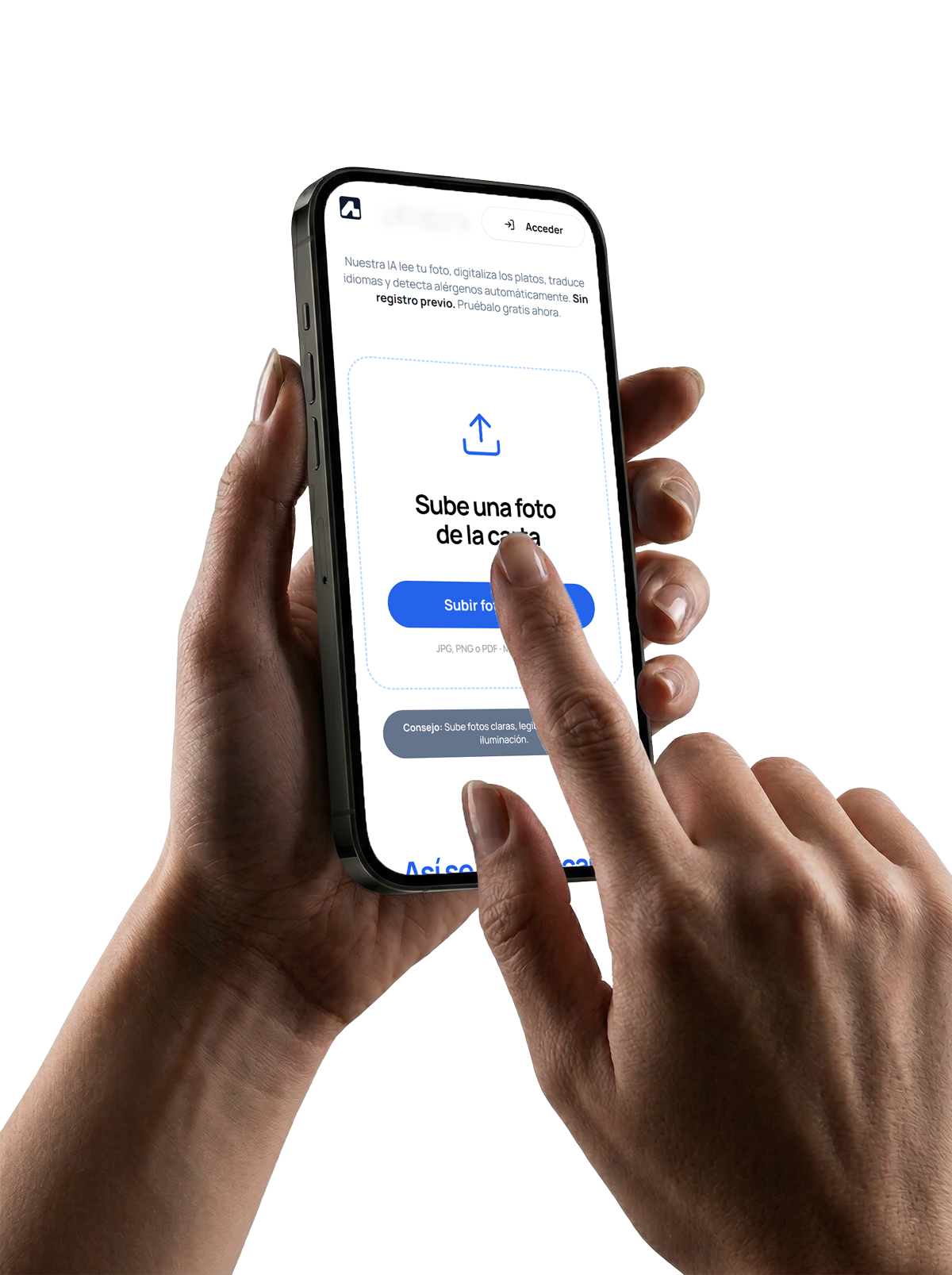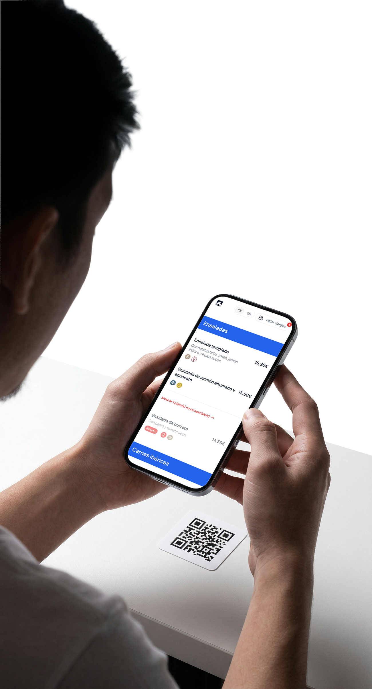 Alergenu es una carta digital con filtro de alérgenos automático por inteligencia artificial. Funciona así: